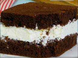 instead of the base mixture mentioned here, you make the basic sponge cake recipe with chocolate pudding powder and the filling with natural cream cheese and honey flavoring ; a tiny part of the measuring spoon provided is enough, the 3 g is already much too strong for the 200 g of cream cheese.