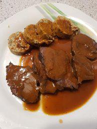 hier mit Rinderbraten und natürlich dukantauglicher Soße; mit Rotkraut wäre dann das ideale Weihnachtsmenü, dann allerdings nicht mehr P1